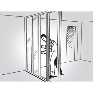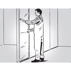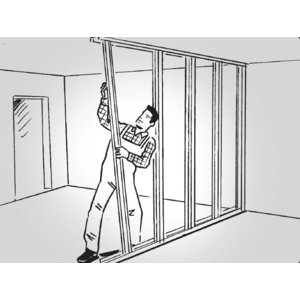 Na górnej belce drzwi umieszczamy poziomo profil z dwoma narożnikami, wykonanymi przez nacięcie i wygięcie profilu, i przykręcamy do pionowej ramy ościeżnicy. Drugi słupek montujemy wzdłuż boku ościeżnicy, przykręcając go do ościeżnicy oraz górnych i dolnych elementów. Pomiędzy górną poprzeczką ościeżnicy a profilem sufitowym co 40 lub 60 cm umieszczamy dodatkowe słupki, które usztywnią konstrukcję.