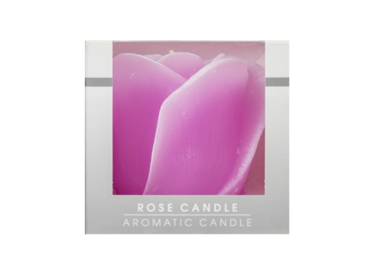 - Świeca zapachowa Merci róża w pudełku 12 x 10 cm różowa zapach róża i goździk