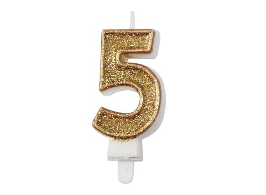 Świeczka cyferka premium nr 5 15 cm złoty