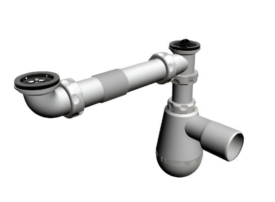 - Syfon zlewozmywakowy 2-komorowy butelkowy, sitko plastikowe, korek PCV