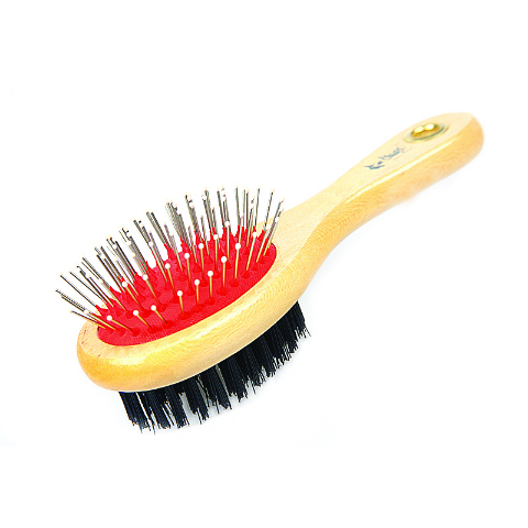 - >Szczotka drewniana owalna dwustronna M igły metalowe z kulkami + włosie PVC Dingo