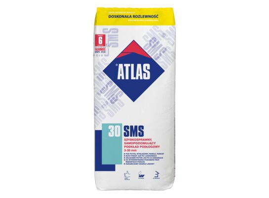 - >Szybkosprawny samopoziomujący podkład podłogowy SMS 30 25 kg Atlas