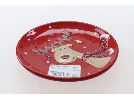 Talerz ceramiczny renifer 17,5 cm czerwony