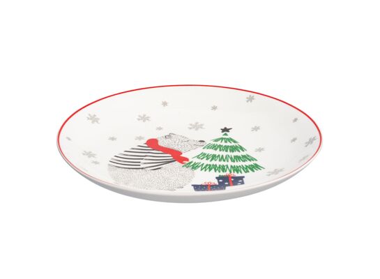 - Talerz deserowy Winter friends porcelanowy 21 cm niedźwiadek biały