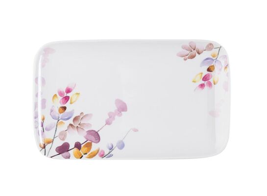 - Talerz prostokątny Japandi 22,5 x 12,5 cm kwiaty biały