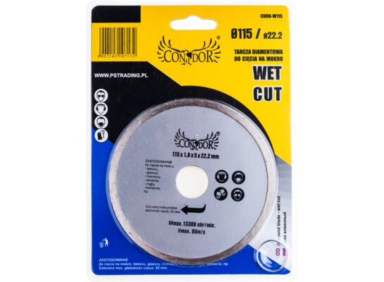 - Tarcza diamentowa do cięcia na mokro pełna 115 mm Condor