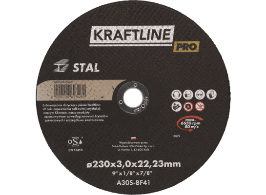 - >Tarcza do cięcia T41 230 x 3,0 x 22,23 mm stal KRAFTLINE PRO