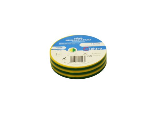 - Taśma izolacyjna wodoodporna 0,13 mm x 15 mm x 10 m żółto-zielona ELEKTRO