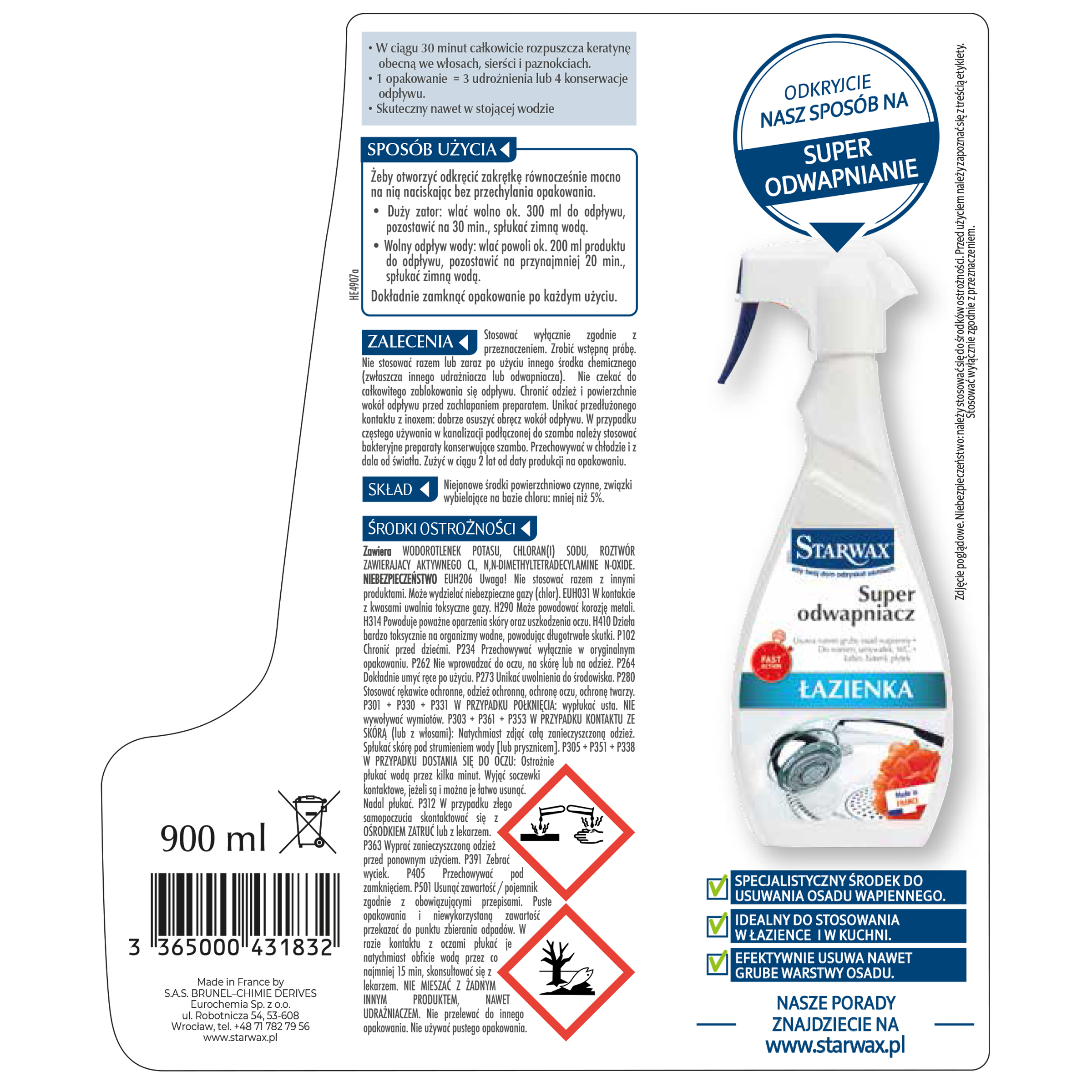 - Udrażniacz do włosów, wodotlenek potasu + chlor, 900 ml