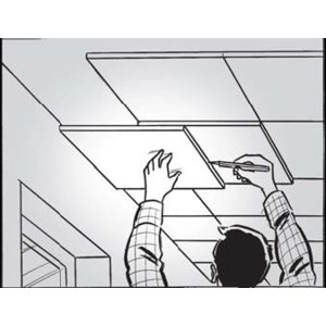 Pracę zaczynamy od wykreślenia linii dzielących sufit na cztery równe prostokąty, wzdłuż których rozpoczyna się układanie kasetonów. Do układania kasetonów używamy specjalnego kleju do styropianu, który rozkładamy równomiernie na odwrocie każdego kasetonu. Pierwszy kaseton przyklejamy na przecięciu wyznaczonych linii. Przyciskamy z wyczuciem kaseton do sufitu tak, aby klej rozszedł się po całej powierzchni płyty i dobrze przylgnął. Jeśli bokami wypłynęło trochę kleju, usuwamy go natychmiast za pomocą wilgotnej gąbki lub szmatki. Kolejnymi kasetonami pokrywamy cały sufit.
