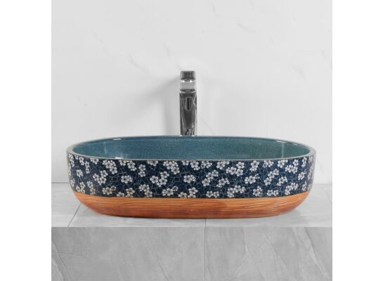 - Umywalka nablatowa KR-374 z motywem kwiatowym 59,5 x 39,5 cm Kerra