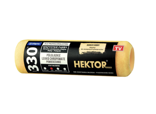 Wałek Hektor H25W13 Blue Dolphin do powierzchni półgładkich i lekko chropowatych został wykonany z poliestru, który lepiej chłonie i oddaje farbę, nie zostawiając włosia na malowanej powierzchni. Dzięki temu, że produkt bardzo dobrze się roluje, nie musisz martwić się o jego ślizganie się podczas malowania, a za sprawą skosów na bokach wyeliminowano nawarstwianie się farby. Wałek jest przeznaczony do malowania farbami akrylowymi, lateksowymi i olejnymi zarówno z efektem matu, jak i połysku, a co ważniejsze, nawet przy wielokrotnym użyciu zachowuje on swoją pierwotną puszystość.