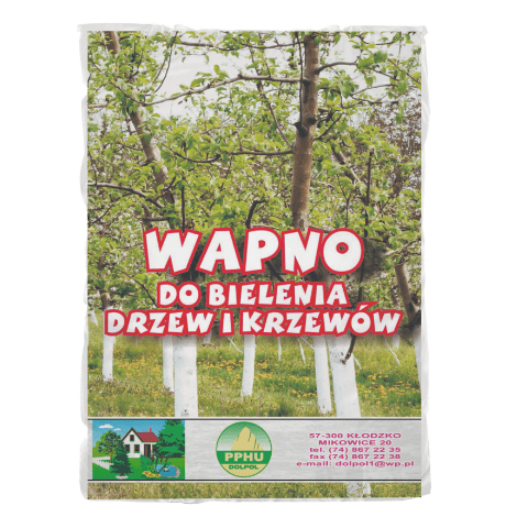 Wapno do bielenia drzewek 1 kg tworzy na powierzchni pni drzew warstwę odbijającą promienie świetlne. W dzień chroni ona przed nadmiernym nagrzewaniem, natomiast w nocy zapobiega przemarzaniu pni i konarów oraz powstawaniu ran zgorzelinowych. Wapno bardzo długo utrzymuje się na roślinie i może być stosowane także w celu odkwaszenia gleby. Opakowanie zawiera 1 kg Ca(OH)2, które należy stosować w okresie jesiennym oraz wiosną.