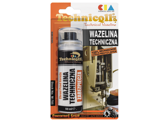 Wazelina techniczna jest wysokiej jakości środkiem ochronnym, przeznaczonym do smarowania mechanizmów precyzyjnych, zamków, kłódek, zawiasów, narzędzi, maszyn do szycia, maszyn do pisania, kosiarek oraz sprzętu sportowego.