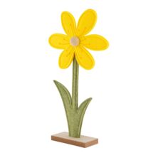Figurka filcowa kwiatek na podstawce drewnianej 17 x 5 x 31 cm żółty