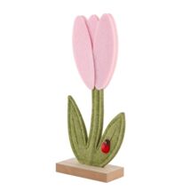 Figurka filcowa tulipan z biedronką na drewnianej podstawce 12 x 5 x 26,5 cm różowy