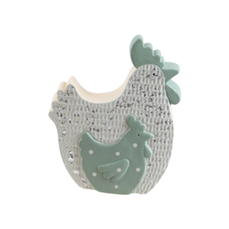 Figurka ceramiczna kura 15,5 cm biało-zielona mix wzorów