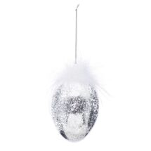 Bombka transparentna jajko ze srebrnym brokatem 12 x 8 x 8 cm