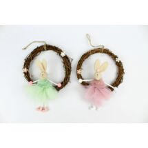 Figurka ceramiczna zając z różową/szarą kokardką 9 cm