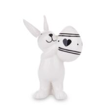 Figurka ozdobna zając z pisanką 12,5 x 10 x 7 cm biało-czarny
