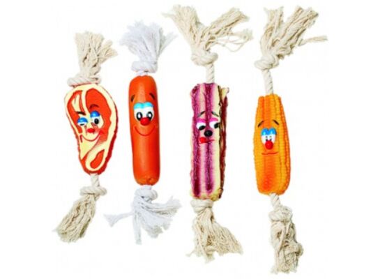 - Zabawka dla psa na sznurku 25-35 cm(stek,kukur,parówka)