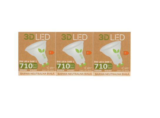- Żarówka 3D LED GU10 8 w barwa neutralna 3 sztuki