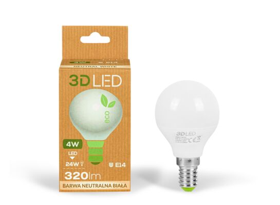 Żarówka LED E14 4 W kulka barwa neutralna 3D LED