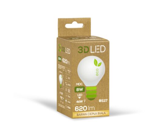Żarówka ledowa 3LED kulka E-27 8W barwa ciepła