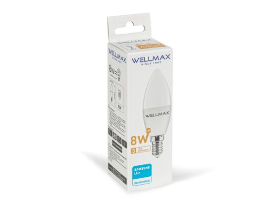- Żarówka ledowa Wellmax Samsung świeczka LED E-14 8W barwa ciepła