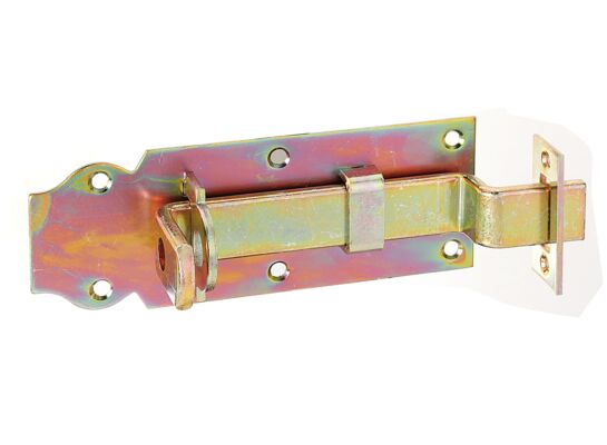 Zasuwa zamkowa z płaskim uchwytem, z wpuszczonymi otworami na śruby, wersja: wygięta, z zamocowaną blachą zaczepową.