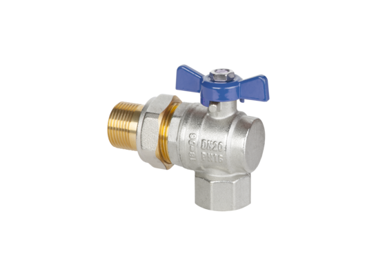 - Zawór kulowy kątowy ze śrubunkiem z pokrętłem motylkowym 3/4" GW/GZ Invena Prov