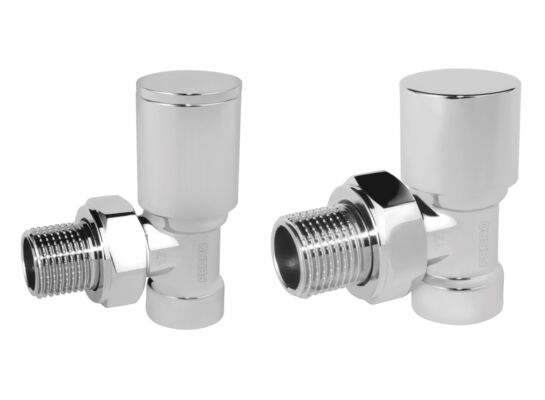 Zawory grzejnikowe zasilanie + powrót kątowy chromowany