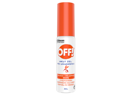- StosowanieOFF! Akut, nałóż go bezpośrednio na podrażnione miejsce po ukąszeniu owada lub poparzeniu pokrzywą, powtarzając aplikację 3-4 razy dziennie. Produkt należy stosować na nieuszkodzoną skórę, unikać kontaktu z oczami i nie stosować u dzieci poniżej 2. roku życia. W przypadku braku poprawy lub nasilenia objawów, należy skonsultować się z lekarzem.