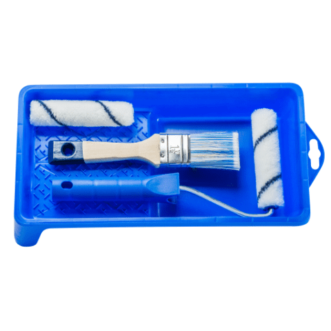 - Typzestaw kuweta + wałek + pędzel + folia + taśma