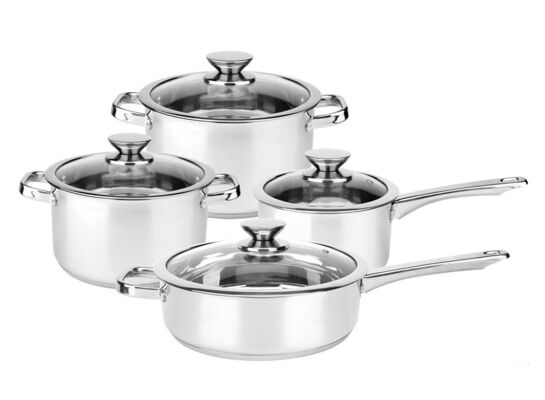 - Zestaw garnków nierdzewnych z pokrywkami Dover 2 garnki + rondel + patelnia