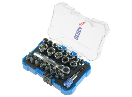 Zestaw końcówek wkrętakowych bitów i nasadek 30 szt pudełko plastikowe DEDRA