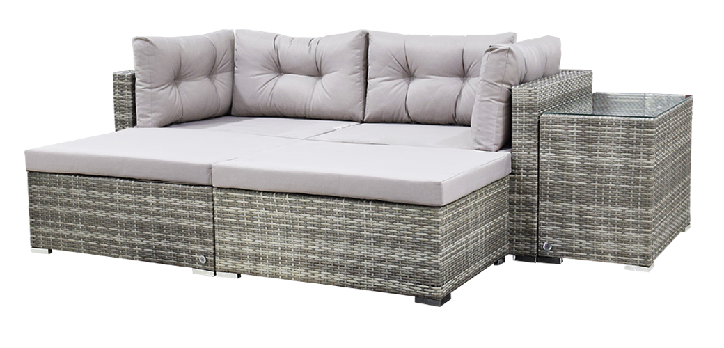 Zaaranżuj przestrzeń wypoczynku wedle własnego pomysłu. Decydując się na ten zestaw mebli, możesz samodzielnie zdecydować, w jakiej konfiguracji ustawić je na tarasie lub w ogrodzie. Stwórz strefę relaksu, która w pełni będzie spełniać Twoje oczekiwania i potrzeby. A w razie potrzeby łatwo i szybko ją zmodyfikuj.