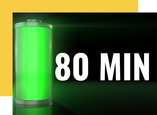 Nie trać czasu na przerwy w trakcie wykonywania prac. Akumulator tego urządzenia naładujesz w 80 min, aby móc szybko kontynuować rozpoczęte projekty. Oszczędzaj swój czas i pracuj wydajniej.