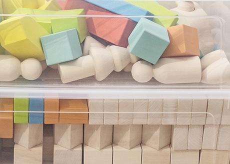 Kształt i kolor pojemników umożliwia dobieranie elementów z serii.