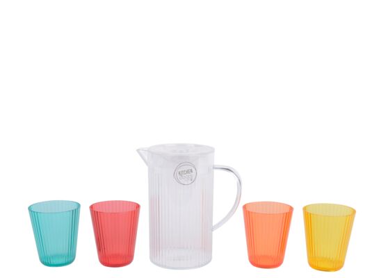 - >Zestaw plastikowy do napojów dzbanek +szklanki wielokolorowy
