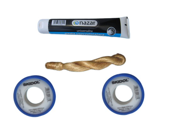 - Zestaw uszczelniający pakuły100g, pasta 75g, 2x taśma teflon
