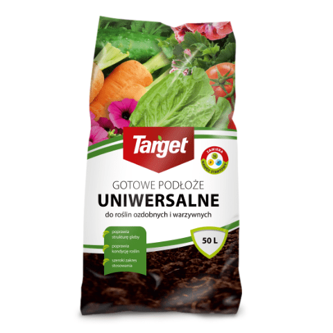 Ziemia uniwersalna 50 l Target jest przeznaczona do sadzenia i przesadzania roślin domowych, balkonowych i ogrodowych, a także warzyw. Produkt zawiera mieszankę torfów niskich oraz wysokich. Dzięki odpowiedniemu poziomowi pH zapewnia on prawidłowy rozwój roślin oraz ułatwia pobieranie wody i składników pokarmowych. Za pomocą tej ziemi uzyskasz bujne kwitnienie i obfite plony. Opakowanie zawiera 50 l podłoża uniwersalnego o odczynie pH w zakresie 5,5-6,5 wzbogaconego nawozem startowym.