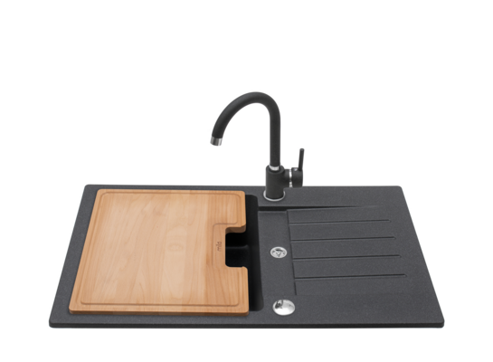 - Zlewozmywak FOX z baterią czarny 77 x 45 x 17 cm deska w komplecie