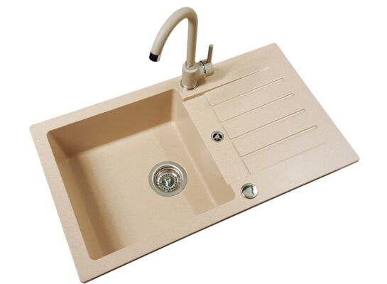 Zlewozmywak granitowy 1-komorowy z ociekaczem FOX z baterią U 77 x 45 x 17 cm beżowy