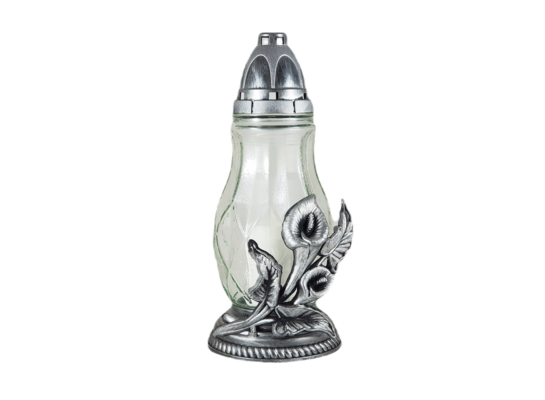 Znicz szklany kalie Z 436 29 x 12,5 cm 27 h srebrny