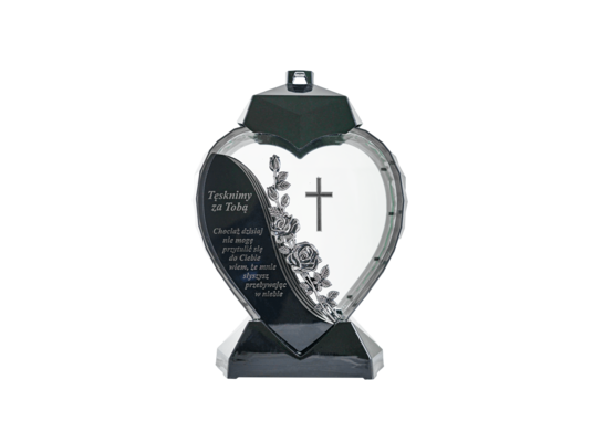 - Znicz szklany serce sentencja 39 x 18 cm srebrny / złoty
