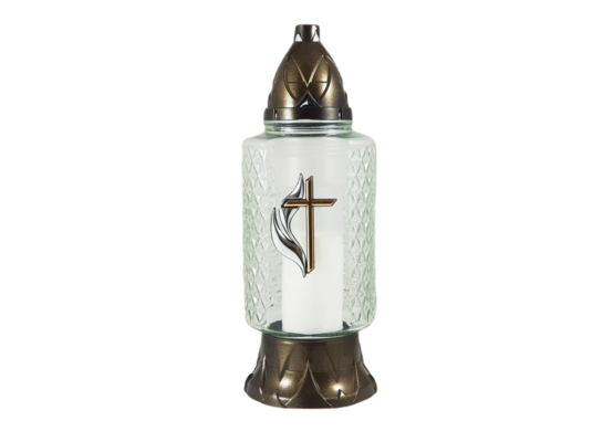 Znicz szklany Z 550 krzyż 30 x 11 cm 27 h 90 g złoty