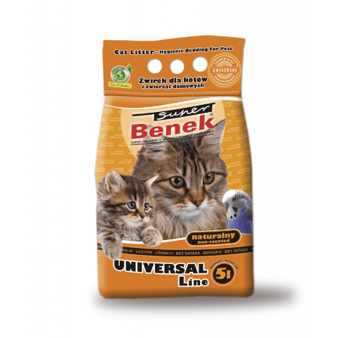 Żwirek Super Benek 10 l Uniwersalny pomarańczowy po kontakcie z wilgotnymi zwierzęcymi odchodami zmienia się w bryłki. Szybko usuniesz je z kuwety i łatwo zadbasz o czystość w kociej toalecie. Ten naturalny produkt nie pyli się oraz starcza na bardzo długo. Zainwestuj w ten żwirek, a będzie wymagał on wymiany dopiero po 30 dniach - jeżeli z kuwety korzysta 1 kot.